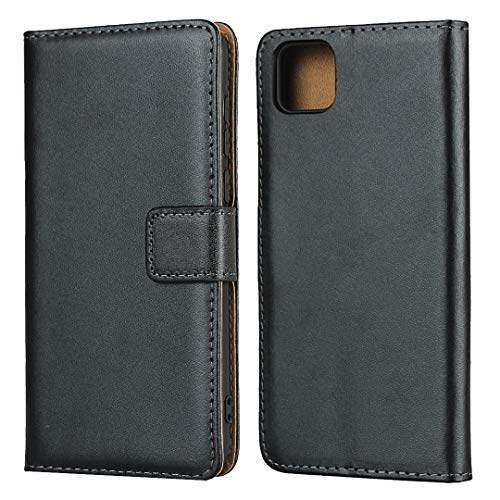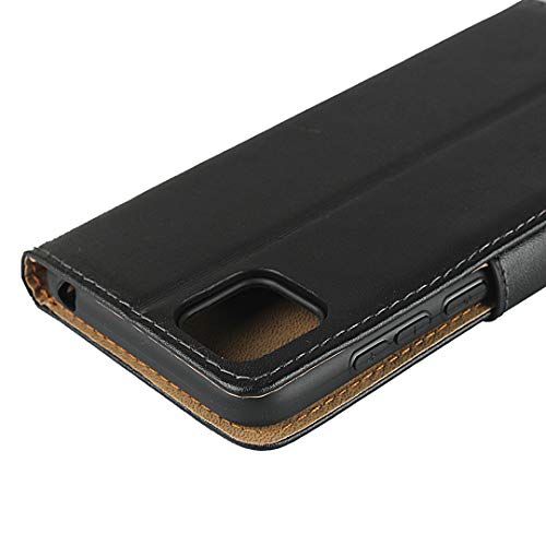 Aopan Huawei Y5P Cover, Flip Custodia in Pelle Vera Caso per Huawei Y5P, Nero