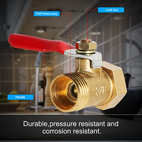 Aopin, valvola a sfera in ottone G 3/8" femmina x G 3/8" valvola maschio di arresto per acqua, olio e gas liquido, valvola a sfera con manico in vinile adatto per PEX, rame, HDPE 4 pezzi