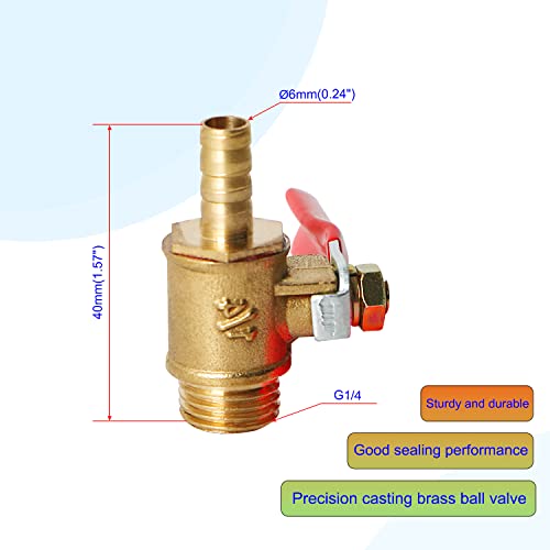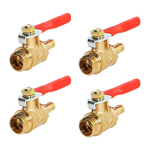 Aopin, valvola a sfera in ottone G 1/4" maschio x 6 mm / 1/4" tubo ardiglione valvola di arresto per acqua, olio e gas liquido, valvola a sfera con manico in vinile adatto per PEX, rame, HDPE 4 pezzi