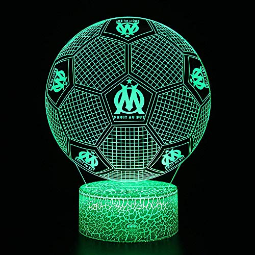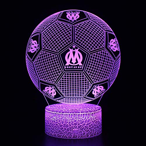 AOPOW Calcio 3D Illusione Ottica Intelligente 7 Colori LED Lampada Da Tavolo Notte con cavo di alimentazione USB Olympique de Marsiglia per Bambini Compleanno Di Natale San Valentino Regalo