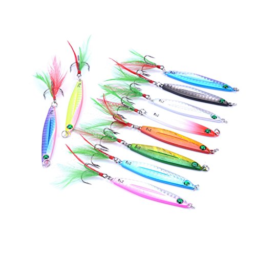 Aorace 10pcs/Lot Metallo Duro Maschere di Pesca Subacquea Mare Esche Minnow Esche Popper Crankbait di Acqua salata i richiami d'Acqua Dolce con la Piuma