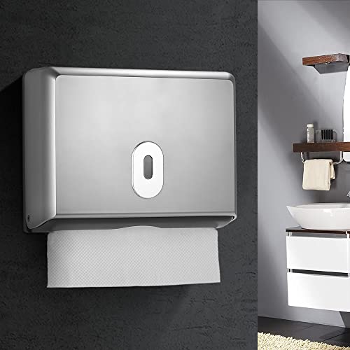 Aoresac Distributore Carta Asciugamani Bagno Cucina Parete Portarotolo Tessuto Dispenser Box Tissue Box per multifold asciugamani di carta, Facile da Installare (Argento)