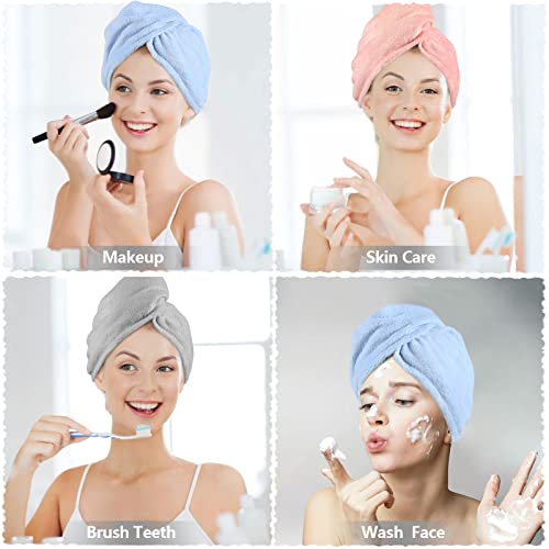 Aoreun Asciugamani per Capelli a Turbante, 3 Pezzi Asciugamano in Morbido Pile di Corallo con 1 Pezzi Fascia per spa Cappuccio per Capelli Secchi Super Assorbente, Asciugamani da Doccia con Bottoni