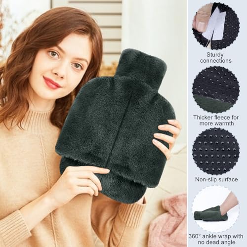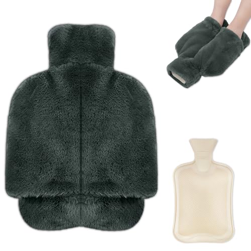 Aoreun Scaldapiedi Borsa Acqua Calda, 2L Scalda Piedi non Elettric 2 in 1 Scaldapiedi Peluche Morbido con Tasca Lavabile Scalda Piedi non Elettrico Scalda Piedi per Uomini e Donne - Grigio