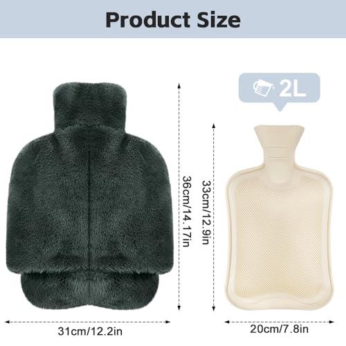 【2L di borsa dell'acqua calda】Lo scaldapiedi della borsa dell'acqua calda in gomma naturale misura circa 36 x 32 cm, ha una capacità di 2 litri, che può immagazzinare e rilasciare il calore per molto tempo e fornire abbastanza calore per i piedi.