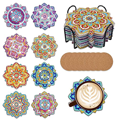 Aoreun sottobicchieri per pittura a diamante, 8 Pezzi sottobicchieri diamond art diamond painting sottobicchiere Sottobicchieri Antiscivolo per Principianti Adulti Bambini arti e mestieri