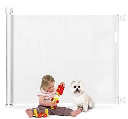 【Design retrattile】Lo barriera di sicurezza per bambini con una lunghezza massima regolabile di 140 cm e alto 88.5 cm, Occupa poco spazio e è retrattile, La rete può essere completamente contratta quando non viene utilizzata.