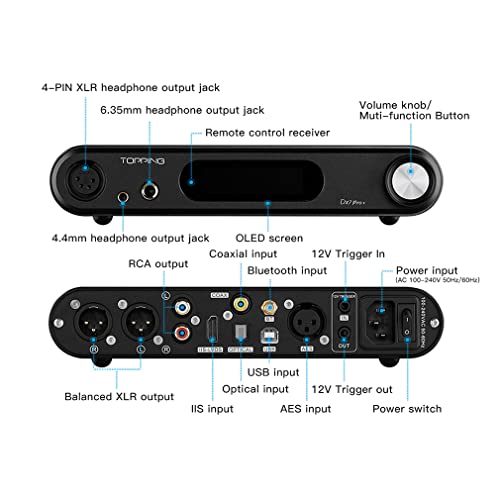 AOSHIDA TOPPING DX7 Pro+ ES9038Pro Balnaced DAC Amplificatore per cuffie DSD512 PCM768kHz DAC USB/Bluetooth5.1/COAX/OPT/AES/IIS Ingresso RCA/XLR NFCA Amplificatore per cuffie con Telecomando (Nero)