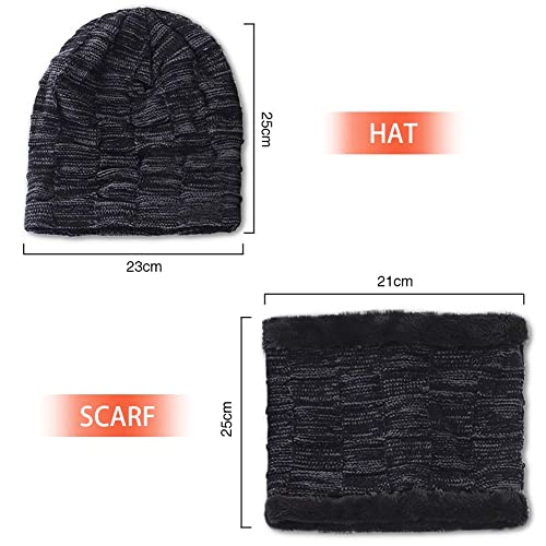 Aotlet Cappello Uomo Invernali Beanie in Maglia con Sciarpa, 2 in 1 Cappello e Sciarpa Uomo Foderato in Pile, Cappello Scaldacollo Unisex per Sport all'aperto Jogging Sci Escursionismo