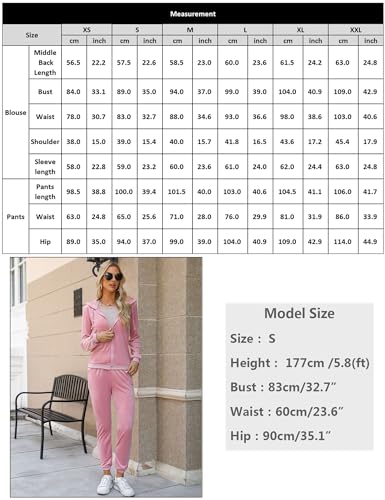 Aottori Tuta Donna in Velluto Tuta Ciniglia Invernale Tuta Casa Manica Lunga Tuta Completa Sportiva Pigiami Due Pezzi Tuta da Ginnastica Felpa con Cappuccio e Pantaloni Jogging Rosa L