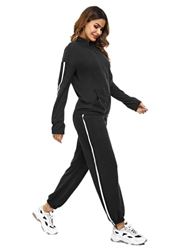 Aottori Tuta da Ginnastica Donna Completo Sportivo 2 Pezzi Giacche con Zip e Pantaloni Sportivi Abbigliamento Casual Pigiama Set per Yoga Training Jogging Corsa Fitness Nero L