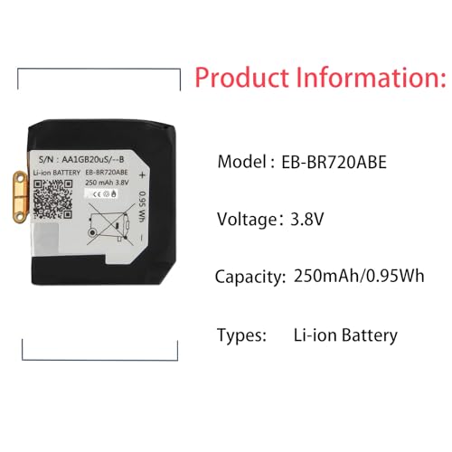 Kit di sostituzione della batteria compatibile solo con Gear S2 Classic SM-R720 R720 SM-R732 R732 Smart Watch. Si prega di verificare il numero di modello sul retro del telefono o nelle impostazioni del telefono prima dell'acquisto.