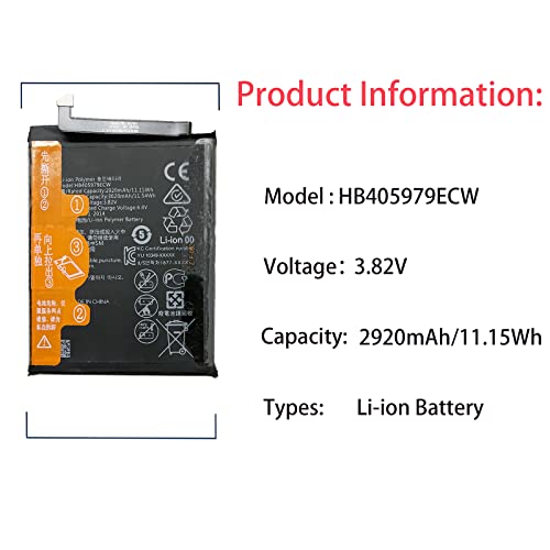 1 【Compatibile】 Modello del prodotto: HB405979ECW, kit di sostituzione della batteria compatibile solo con Huawei Nova, Nova 6A, Honor 6c, Y6 2017. Si prega di verificare il numero di modello sul retro del telefono o nelle impostazioni del telefono prima dell'acquisto.