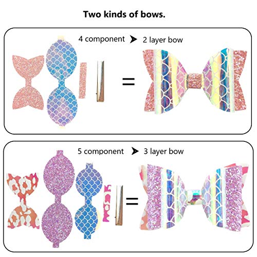 AOUXSEEM Kit di fiocchi per capelli in finta pelle con pezzi pre-tagliati e fermagli per capelli, per ragazze e signora donna (misura media, 24 set B)