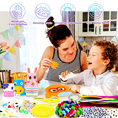 【Set di arti e mestieri più recenti】 Questo kit artigianale per bambini include: kit per la creazione di vassoio di carta, kit per la creazione di bicchieri di carta, adesivo per mosaico fai-da-te, scovolini, pompon, occhi finti, carte con motivi carini, bastoncini colorati, adesivi in schiuma, adesivi con diamanti di cristallo, Carta colorata, carta artigianale colorata, nastro biadesivo, forbici di sicurezza e una confezione regalo.