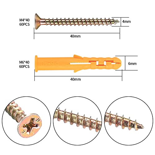 Materiale eccellente: gli ancoraggi a parete sono realizzati in plastica di alta qualità, resistente e non facile da rompere. Le viti autofilettanti sono realizzate in acciaio al carbonio più resistente con finitura zincata, fornendo una buona resistenza alla corrosione in ambienti sfavorevoli come alte temperature, basse temperature e alta umidità.