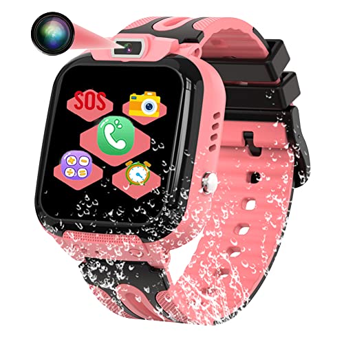 AOYMJRS Smartwatch per bambini IP67 impermeabile - Smart Watch LBS Tracker Ragazze e Ragazzi con Tracker Posiziona Fotocamera Gioco di Matematica per Regalo di Compleanno