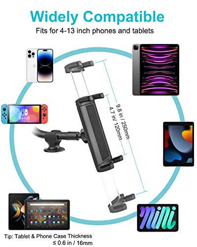 【Ampia compatibilità】 Il versatile supporto da auto per iPad a braccio lungo Aozcu funziona bene con smartphone e tablet da 4 a 13 pollici, come iPad Pro 12.9, 2022/2021/2020 iPad Pro 11, iPad Pro 10.5 9.7, iPad 10th 9th generation, iPad Air 5th 4 3 2 1, iPad Mini 6 5 4 3 2, Fire HD 10 8 7, Samsung Galaxy Tab S8 S7 S6/A8 A7 A6, MatePad huawei, tab m10, iPhone 14 Pro Max, iPhone 13 Pro, iPhone 12 11 Pro Max Xs XR X 8s 6, Galaxy Z Fold, Galaxy S23 S22 S21.