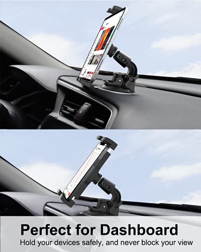 【Ampia applicazione】supporto per tablet a ventosa ha una capacità di assorbimento eccellente su qualsiasi superficie liscia, perfetto per parabrezza, finestrini, cruscotto, cofano dell'auto, cristalleria e parabrezza di barche. Il supporto per tablet da auto per cruscotto ha un disco adesivo per cruscotti per far funzionare meglio la ventosa.