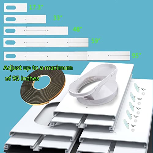 【Dimensione】Guarnizione porta La dimensione massima 90" × 6.4" /220 × 16cm, Adatto per tutti i condizionatori d'aria portatili, con adattatore per finestra, la presa d'aria ha un diametro di 5.1"(13cm).