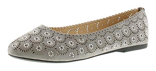 Apache Womens Flat Balletto Stile Scarpe da Tennis con Microfibra, A PEZZETTINI Dettaglio in Superiore E Gemma Decorazioni Smerlato Finitura a Apertura E SVAMPITO A PEZZETTINI Dando Un - Grigio, 39.5