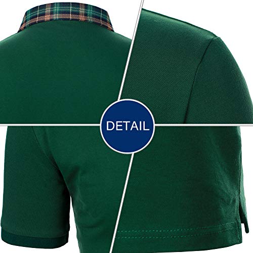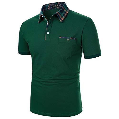 APAELEA Polo Uomo Manica Corta Classico Plaid Collare con Tasca Poloshirt Casual,Verde,S
