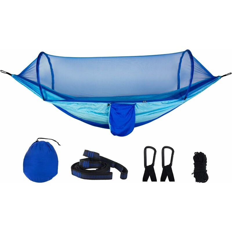 Questa doppia amaca portatile è realizzata con imbottitura da interno in cotone morbido e resistente. La robusta catena e l'amaca durevole con supporto in corda offrono un'esperienza lussuosa e confortevole. contiene due fili di acciaio a memoria a forma di forma, che possono essere utilizzati direttamente dopo aver lasciato l'amaca senza regolazione. Il filo d'acciaio della memoria di forma non si romperà e può essere piegato liberamente. L'imballaggio è piccolo, leggero e facile da trasportare. Adatto per escursioni, campeggio, escursionismo, ecc. Lo spazio è spazioso e traspirante, e la zanzariera e il tappeto possono essere separati. La tasca interna consente di conservare il telefono cellulare, gli occhiali, il portafoglio o altri piccoli accessori. La cinghia misura 2 metri di lunghezza e ha 14 loop, che possono essere regolati liberamente tra due alberi remoti. L'anello nero elettroforetico è molto liscio e non danneggerà il braccialetto durante l'uso. Colore: blu