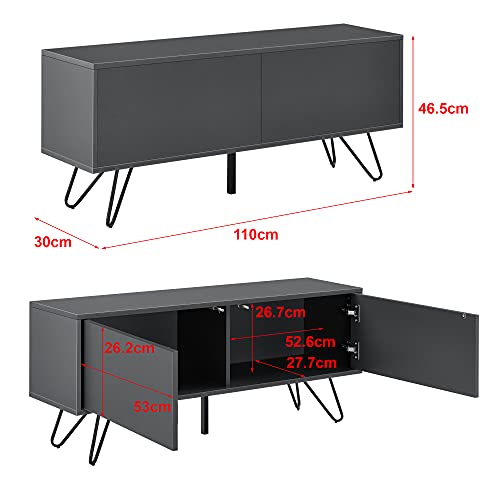 En.casa - Comò con 2 Ante - Apertura Push-to-Open, Gambe in Metallo - Mobiletto Multiuso per Camera/Ufficio (AxLaxP) 46,5 x 110 x 30 cm - Mobile Porta TV con Supporto Fino a 20 kg - Grigio Scuro