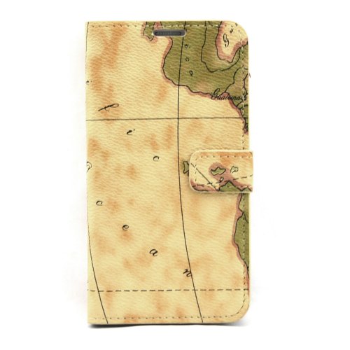 Apexel - Custodia in Pelle con Motivo Carta geografica, a Portafoglio con Porta-Carte, per Samsung Galaxy S5 I9600, Colore Giallo