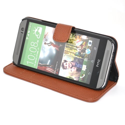 Apexel Hot Sale Magnetic Leather Lichee Pattern Protective Folio Cover con Slot Carte e Supporto per 5" HTCM8 - Marrone