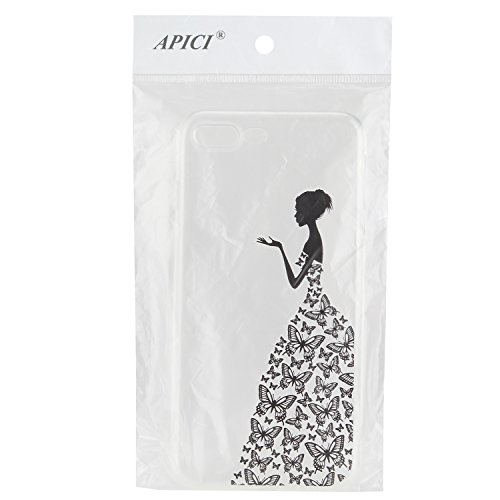 APICI Custodia iPhone 7 Plus, morbido protettiva TPU Case Cover Custodia in silicone per iPhone 7 Plus trasparente con farfalla ragazza