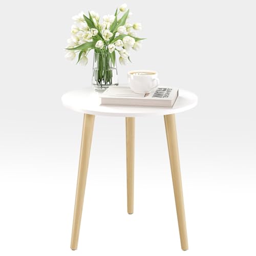 APICIZON Tavolino rotondo Ø 42 cm, altezza 51 cm, tavolino con gambe in legno massiccio, stile scandinavo, comodino in legno per soggiorno, camera da letto, colore: naturale/bianco