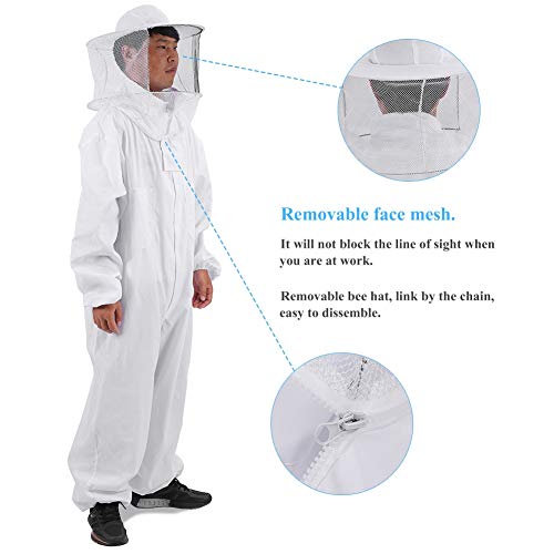 【Lavabile in lavatrice disponibile】: la tuta da apicoltore è 65% cotone e 35% poliestere, protezione durevole ed efficace ma morbida e consente movimenti confortevoli, facile da lavare in lavatrice e facile da maneggiare.