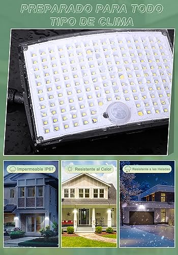 Super luminosità・Angolo di illuminazione di 210 Il faretto solare esterno con sensore di movimento è dotato di 168 LED ultra luminosi e testine regolabili per una luminosità di 3000 lm in una tonalità di luce naturale di 7000 K. Il pannello curvo può ruotare orizzontalmente consentendo un angolo di illuminazione di 210 e una gamma di illuminazione di 200 m², rendendo il vostro percorso di casa più sicuro e confortevole.