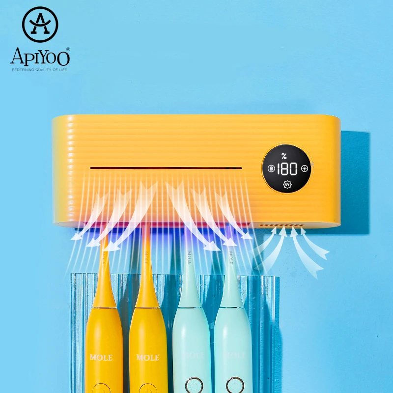 Apiyoo Antibacteria Ultraviolet Toothbrush Yellow Green Sterilizer Automatic Toothpaste Display Temperature Bathroom Accessories