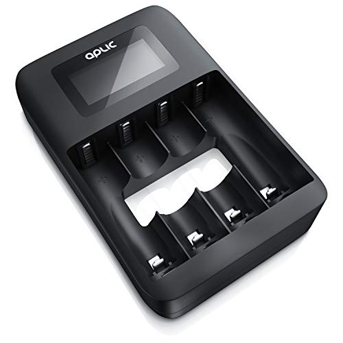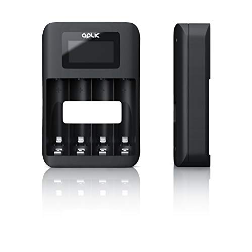Aplic - Caricabatteria universale USB - Tipo AA o AAA NiMH Stilo e ministilo ricaricabili - Carica controllata da microprocessore - 4X alloggiamenti di ricarica - Display LCD - Nero