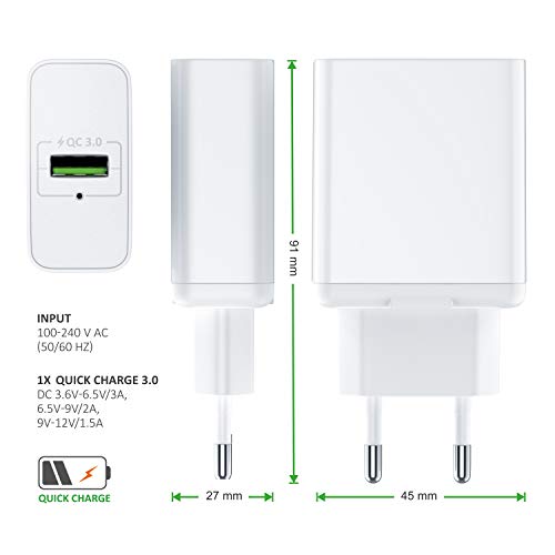 Vantaggi: la tecnologia QC 3.0 ricarica smartphone, tablet e altri dispositivi USB fino a 4 volte più velocemente di un caricabatterie standard. | Sicurezza completa: protezione contro il surriscaldamento, il sovraccarico e i cortocircuiti.