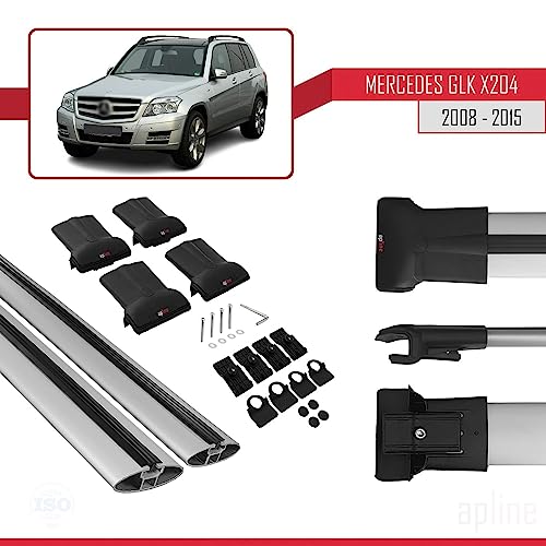 Apline Compatibile con Mercedes GLK Class (X204) 2008-2015 Barre Portatutto FLY Modella Portapacchi Barre Tetto GRIGIO