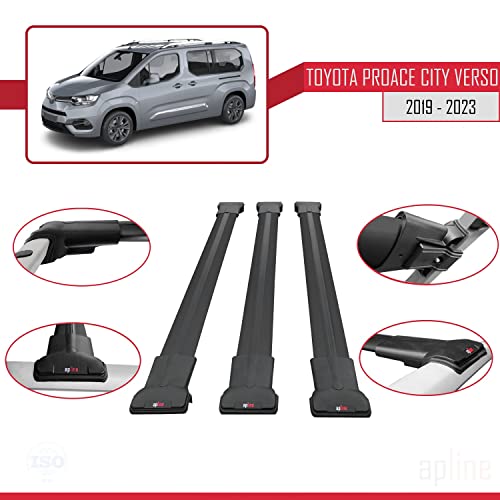 Apline Compatibile con Toyota Proace City Verso 2019-2023 Barre Portatutto FLY Modella Portapacchi Barre Tetto 3 PEZZI NERO