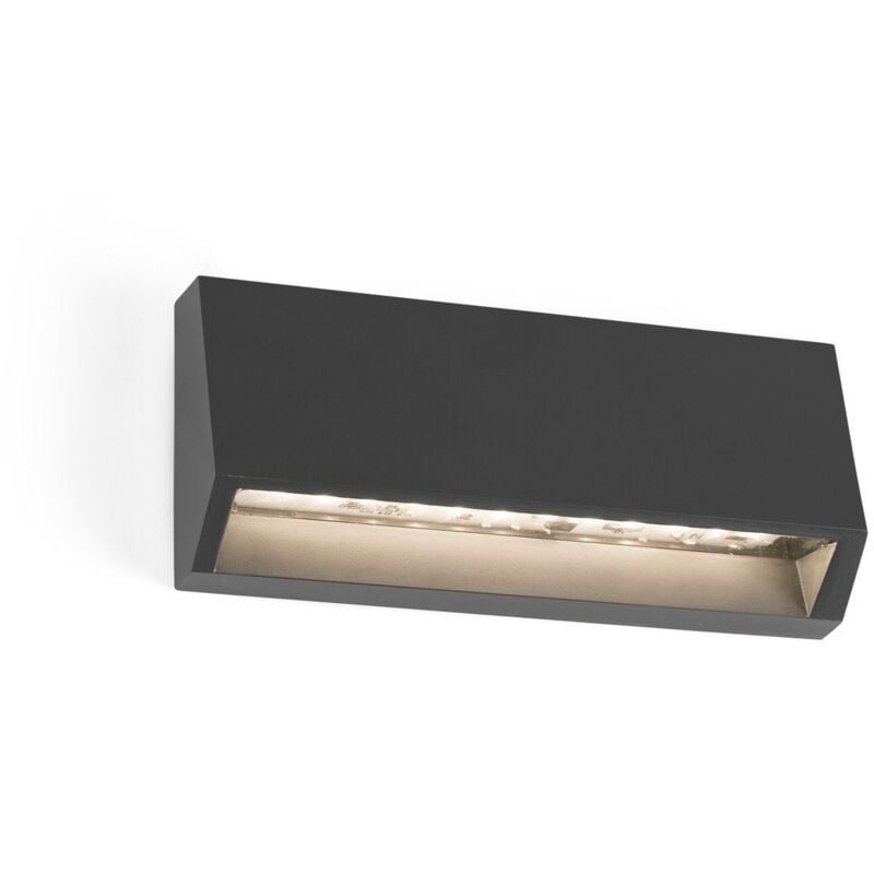 Aplique para exterior gris oscuro, modelo MUST de FARO. Se puede fijar en pared. La fuente de luz incluida es SMD LED 3W 3000K 220Lm. Fabricado en ABS y acabado en gris oscuro. Dispone de una protección IP65