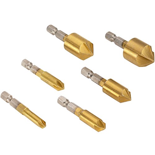 APlus Svasatore Conico in HSS Titanio Rivestito 90° Gradi 6 Pezzi, Set di Svasatori Conici con Codolo Esagonale Punta Svasatore per Trapani/avvitatori, 6mm, 8mm, 9mm, 12mm, 16mm, 19mm