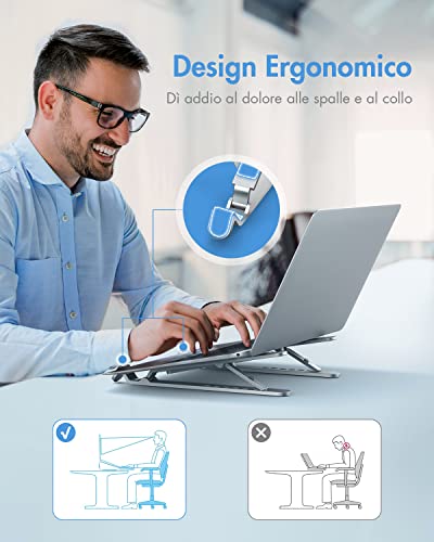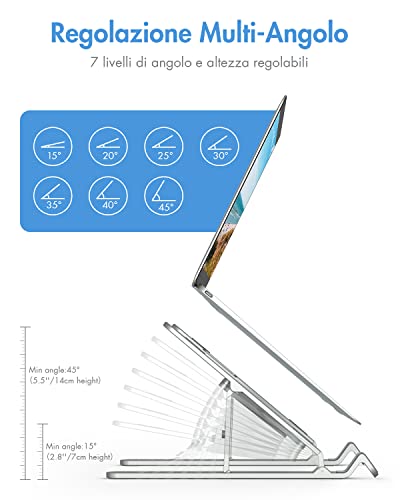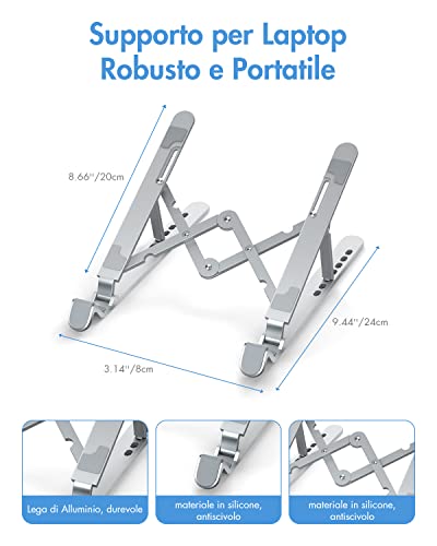 APMIEK Supporto PC Portatile Alluminio 7 Livelli Regolabile Rialzo PC Portatile Supporto Notebook Pieghevole Supporto Laptop per MacBook Air/PRO, Dell, XPS, HP, Lenovo Computer Portatili e Tablet