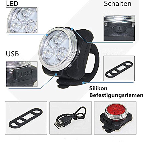 Apogo LED set luci bici bicicletta impermeabile USB ricaricabile posteriore (rosso) luci & head (bianco) lampada ciclismo torcia luci set (650 MAH batteria al litio, 4 modalità luce opzioni, 2 cavi USB)