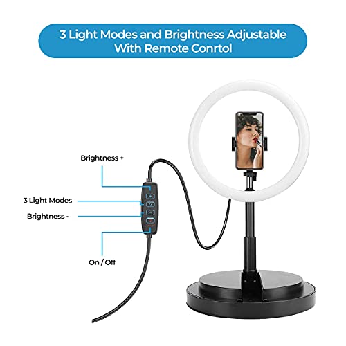 Anello di luce a LED da 26 cm: il grande anello di luce da 26 cm è più luminoso dei normali treppiedi per cellulare, con una potenza che varia tra 5 W e 22 W. Questo treppiede con luce LED per cellulare funziona bene per ritratti dove hai la foto perfetta