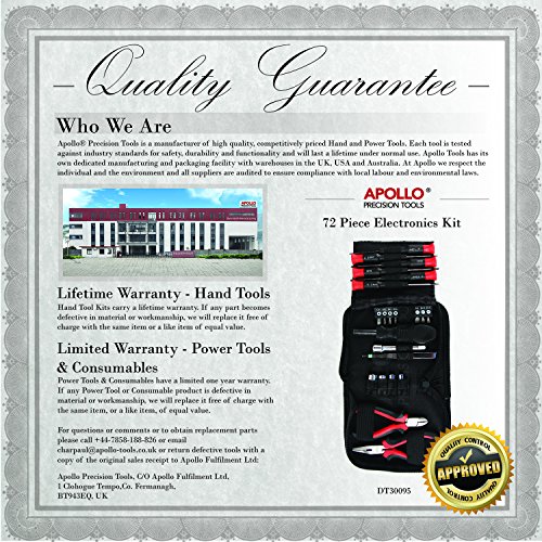 Apollo precision tools - Set di attrezzi per elettronica da 25 pezzi inclusi: pinze di precisione, cacciaviti di precisione, punte da trapano, cacciavite e inerti, bussole e pinzette, custodia con cerniera