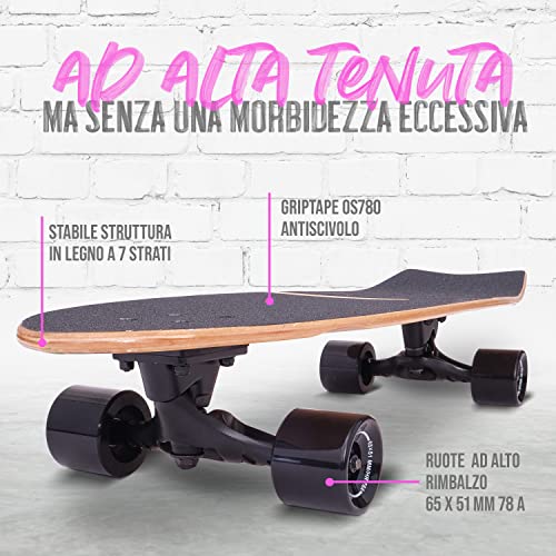 GRIP PERFETTO - Il deck concavo del mini skateboard offre un grip perfetto per un allenamento di surf su strada ottimale. Inoltre, le ruote 78A da 65mm dello skateboard cruiser legno garantiscono una buona aderenza senza essere troppo morbide.