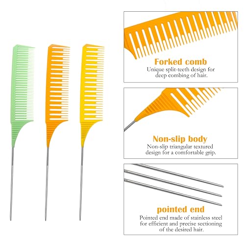 Pettine a manico in 3 misure: il pettine per parrucchiere ha 3 taglie di denti fini, design a 2 strati, per pettinare i capelli, il pettine può aiutare a separare i capelli in modo più efficace rispetto ai tradizionali pettini per capelli, rendere il colore dei capelli più veloce e uniforme, coda extra lunga in acciaio inox.