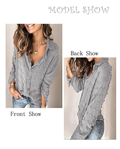 APOONABA Camicia Donna a Manica Lunga Scollo a V Tinta Unita Pom Pom Camicetta Primaverile in Chiffon Blusa Elegante Colletto Primavera Autunno Grigio L