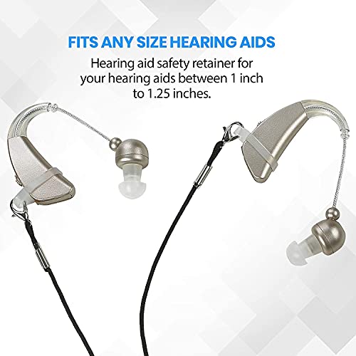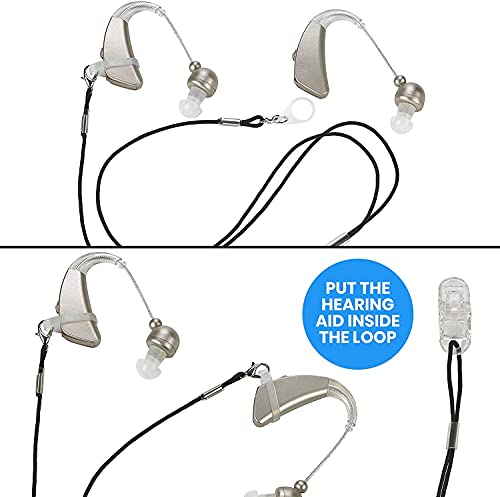 Clip per apparecchi acustici - Supporto protettivo con cordino antismarrimento - Corda con anelli e clip e clip di sicurezza ideali per apparecchi acustici dietro l'orecchio (confezione da 2)