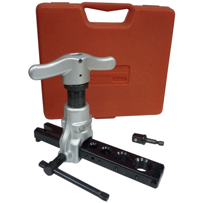 Art. r2224.02 modello professionale per tubi in rame. con cono eccentrico e frizione. effettua colletti a 90? su tubi in pollici e millimetri. fornito in cassetta di plastica e con cono autocentrante per un perfetto colletto a 90?. per colletti ¦ 4